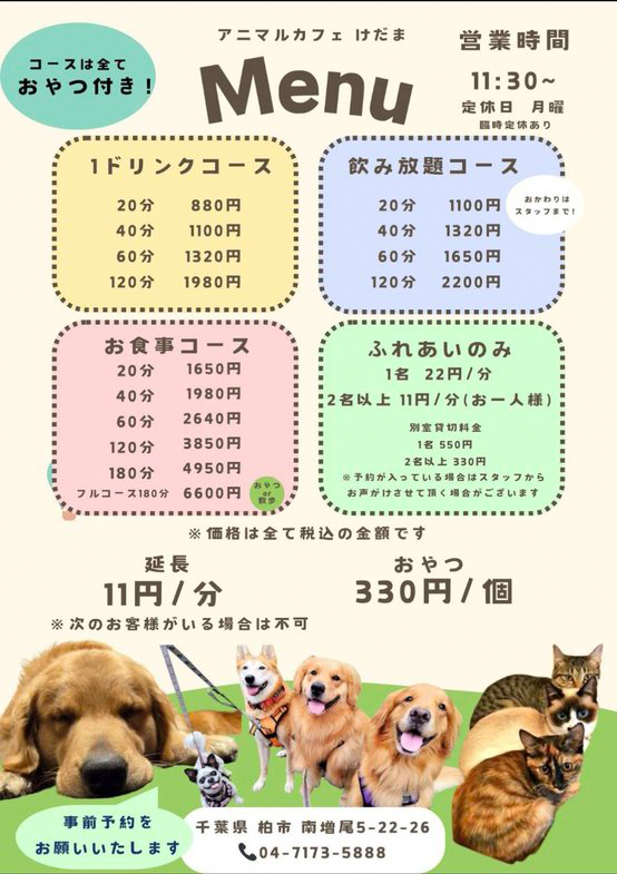 各種メニュー X Facebook はてブ LINE Pinterest コピー 2026.01.072026.01.24 アニマルカフェけだまメニュー ふれあいメニュー 一旦画像を貼り付けておきます。随時整備していきます。 公式より転載 以上